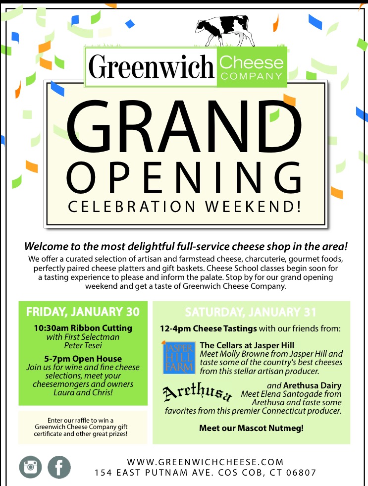 Have you driven by the adorable cheese shop in Cos Cob and have been meaning to stop in but haven’t yet? If so, you must check it out ASAP ~ come by this weekend for their official Grand Opening! In the space of the former laundromat The Greenwich Cheese Company is an amazing gem full of incredible cheeses and other delights. Offering cheese school [stay tuned for the nights you can sign up for!] and a variety of unique products this is exactly what we needed. Come check it out this weekend to welcome them to town at their Grand Opening!